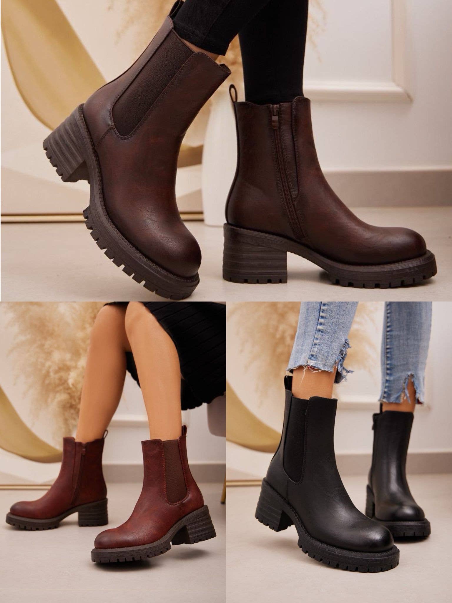 The ankle boots are very pretty, but the finishing is not great. The soles are not glued inside the shoes, so when you take them off, the sole comes out. But the worst was the smell... I had to air them out and use Febreze to get rid of it. It's a shame. Now we have to see if the client likes them.