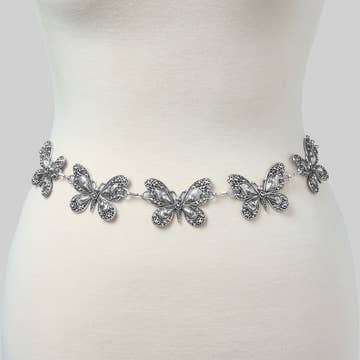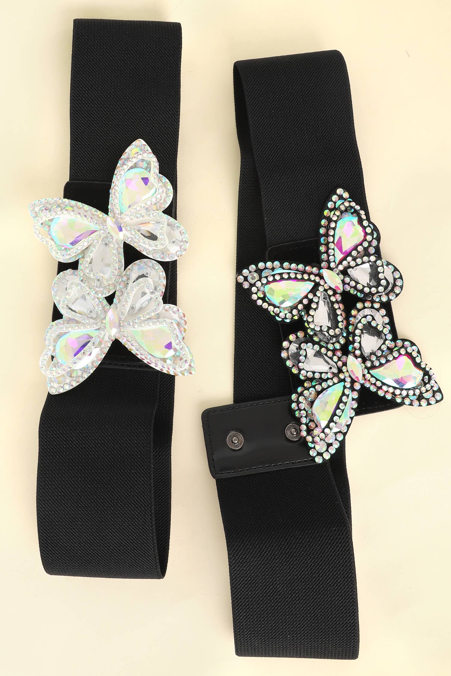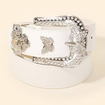 Rhinestone Pave Butterfly Ruched Elastic Back Belt