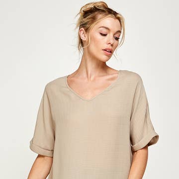 SKU: 04827-ALMS/M Made in Thailand Aesthetic: Casual Care Instructions: Machine wash Fabric: 100% Cotton Fit: Missy Neckline: V-neck Occasion Theme: Everyday Occasion: Everyday Pattern: Solid Season: Core Sleeve Length: 3/4 Sleeve Product Language: English Packaging: Reduced Production: Ethically sourced