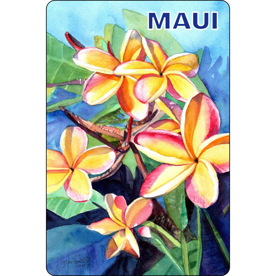 Gorgeous reds and yellows dominate this fantastic image of Maui's highest mountain. It has a full color image on the front and space on the back for an address and message. USPS mailing requires two regular letter stamps. Made of 1/4" American made maple plywood, each postcard measures 3.75" x 5.75". Made on Kauai.