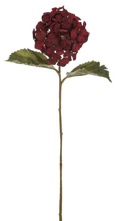 Artificial Silk Hydrangea Flower Stem - Burgundy or Wine