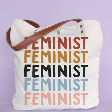 15" wide tote (market) bag. Future is Female. 100% heavy canvas. 20" web canvas handles, 9" drop. 15"W x 16"H. Natural Color.