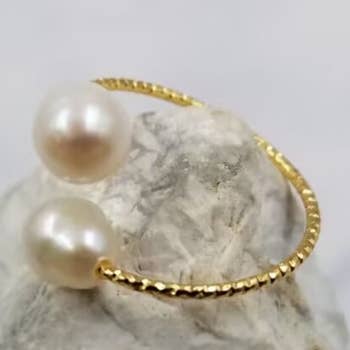 BESTSELLER ! This Pearl ring is a bestseller on ETSY, at in person markets and now on Faire! Pearls are a classy addition to any look and this is a spin on your regular pearl. Its unique flat shape is great as a ring and looks great in both silver and gold. Choose your Size and metal type. The most common ring sizes are between 5 and 9, with 7, 7.5, and 8 being the most common. Materials available include Gold Fill or Sterling Silver, these two choices are great for daily wear and are water proof and are high quality. Gold Plate and Silver Plate is a hypoallergenic metal alloy coated with an additional layer of plastic film, making it an affordable fashion jewelry option.