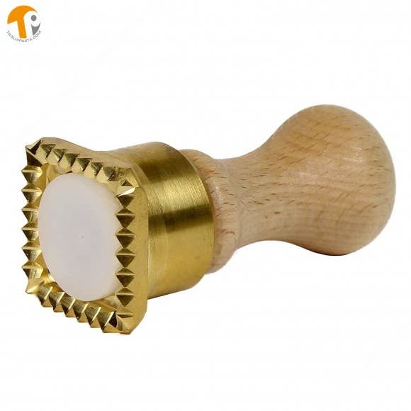 Adjustable pasta cutter with 4 toothed brass wheels 38 mm, Ravioli Tool, Made in Italy Multiple pasta cutter consisting of a wooden handle, flexible stainless steel structure and 4 toothed brass blades adjustable from 22 to 116 mm. Wheels diameter 38 mm. Perfect to prepare your homemade pasta, such as Ravioli, Tortellini and more. Handcrafted brass tool that guarantees great quality and a perfect cut of the sheet. This tool is Made in Italy.