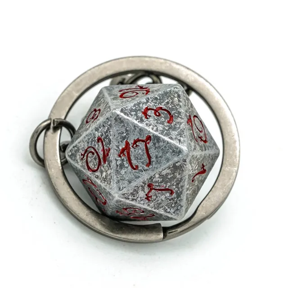 Keyring: Stone Effect Metal D20 Dice with Bloody Font D&D