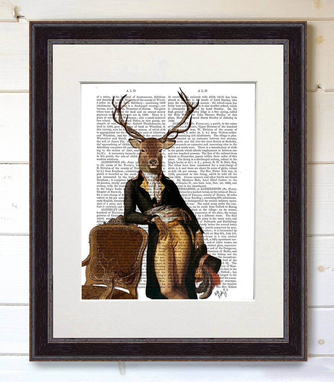 Imaginative illustrations from Kelly Stevens-McLaughlan printed onto the pages of antique books from the 1800s. Charming and unusual artworks that have vintage character and timeless style. Options: 1 - Real antique book page, in a 11x14in white mat. 2 - Real antique book page, in a 11x14in white mat, and FRAMED in black, white or caramel wood. Beautiful and ready to hang.