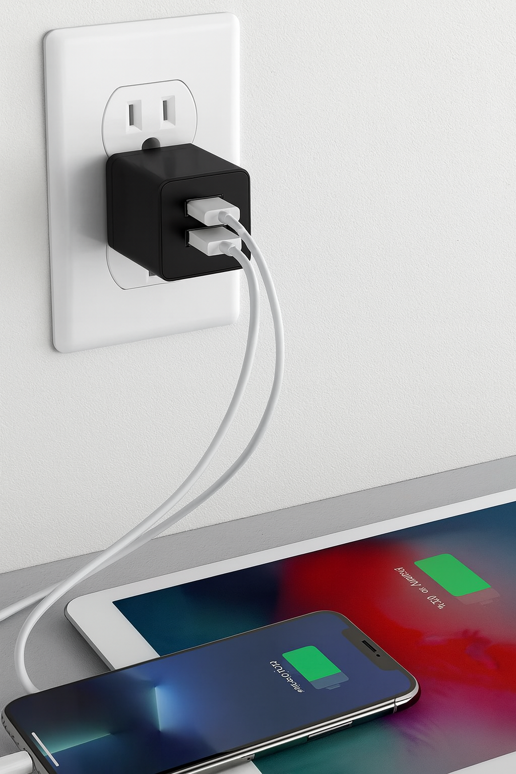 Power up two devices simultaneously with this ultra-compact, travel-ready USB wall charger. Designed with convenience and performance in mind, it delivers up to 2.4A output—charging your iPhone faster than the standard bundled charger. Key Features: Dual Ports: Charge two devices at once with high-speed USB output. Fast Charging: Delivers up to 2.4A for faster, more efficient power. Compact & Portable: A slim profile with a foldable plug makes it ideal for travel. Universal Compatibility: Works seamlessly with all iPhone models (including the iPhone 13/12/11 series and earlier) and most Android devices, including the latest Samsung Galaxy phones (S20+, S20 Ultra, Z Fold, Z Flip, and more). Certified Safe: ETL listed for the US & Canada (cETLus) to ensure safe, reliable charging for everyday use. Perfect for home, office, or on-the-go charging—a must-have essential for any tech setup.
