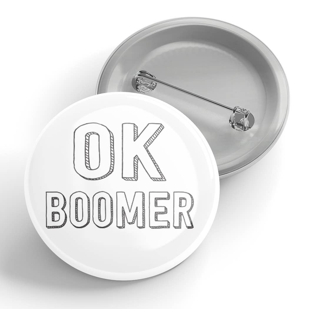 1.25"OK Boomer Button! Made in Canada. Buttons take 5-10 days to process and ship. • No minimum per style • packaged loose • Made in Canada