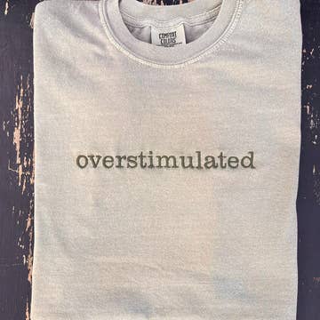 Overstimulated Embroidered Comfort Color Khaki Tee