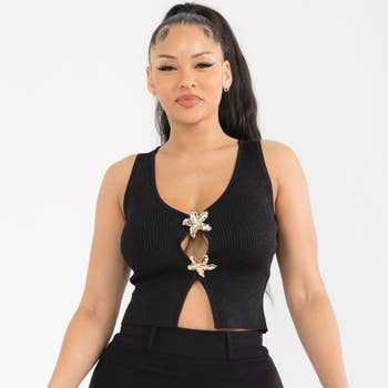 No reviews for Seamless Front "Ho" Studs Embellished Detail Top yet.