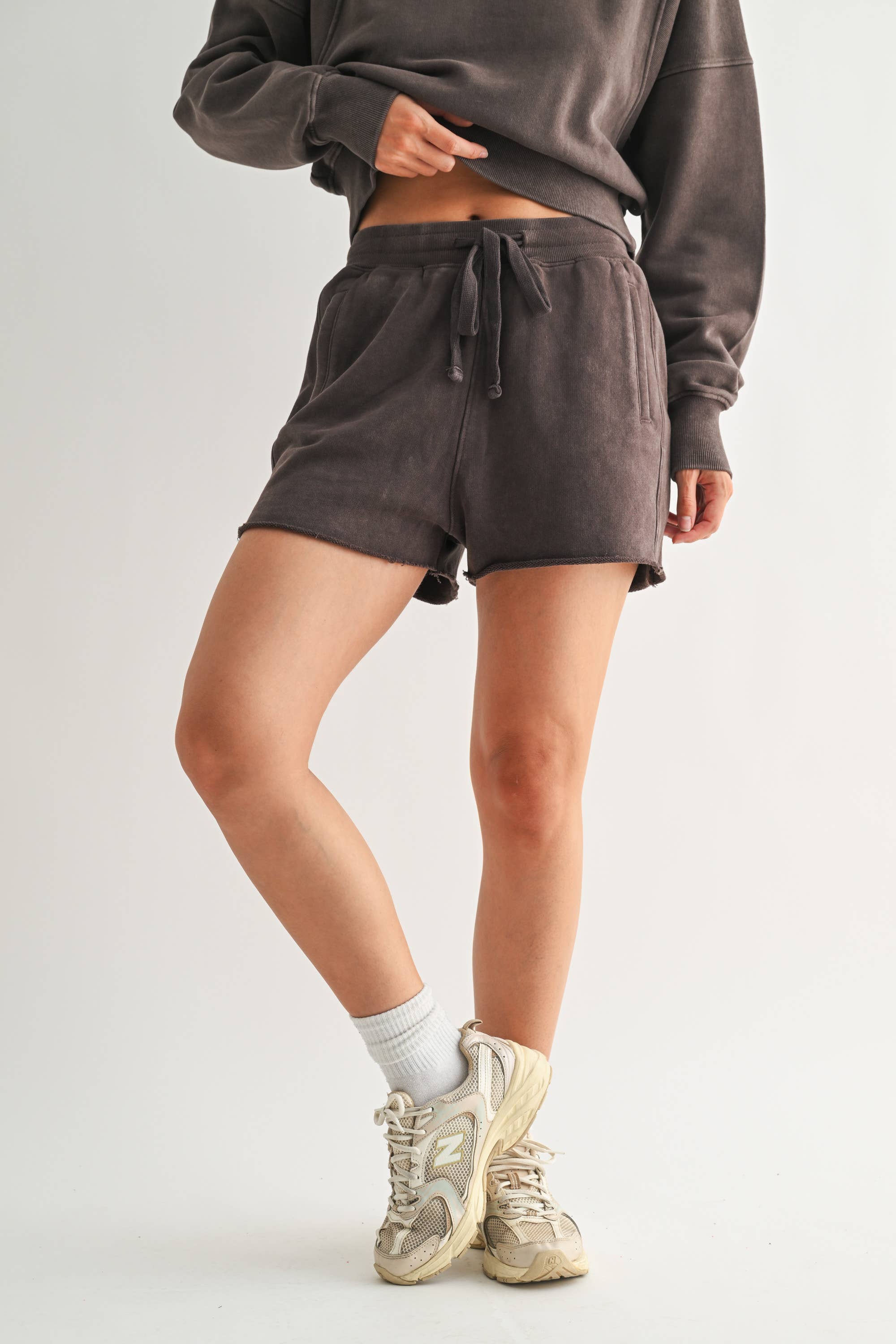 Relaxed, effortless, and perfectly broken-in—the Mineral Wash Half Button Tee is a staple for everyday wear. Crafted from a soft cotton blend, this short-sleeve tee features a vintage-inspired mineral wash for a naturally worn-in feel. The raw edge seam detailing adds a touch of rugged charm, while the half button-up collared design brings a polished yet casual look. Lightweight and breathable, it’s perfect for pairing with your favorite denim or lounge shorts for an easygoing vibe. Luciana is 5'9", a size 2, and is wearing an S 95% cotton 5% spandex Made in China