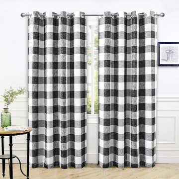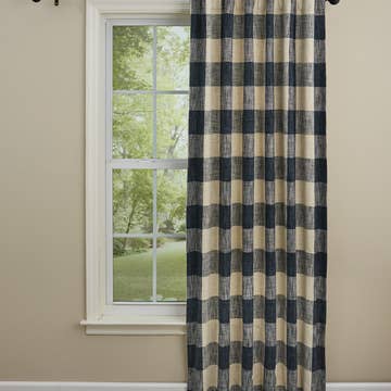 Introducing the Heritage House Check Panels, a charming addition to any home seeking a touch of country elegance. Measuring 72" x 63" and sold as a set of two, these panels are crafted from everyday cotton, ensuring both durability and a soft, inviting texture. The classic black and nutmeg check pattern exudes a primitive, rustic charm that complements a variety of interior styles, from farmhouse to traditional. Included tiebacks offer versatile styling options, allowing you to easily adjust the amount of natural light entering your space. Perfect for living rooms, bedrooms, or dining areas, these panels bring warmth and character to your home decor. Transform your space with the timeless appeal of the Heritage House Check Panels.