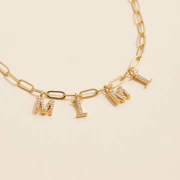 The Name Necklace: Let's customize! Create your very own 100% YOU piece that you'll never have to take off. * Standard letters and numbers only * Letter and number beads are 14K IP 9mm gold plated brass with crystals * Spaces will be represented by 4mm 14K gold-filled round bead * 1mm 14K IP gold plated brass cable chain (16” +1"+1”) This custom piece ships within 5-7 days.