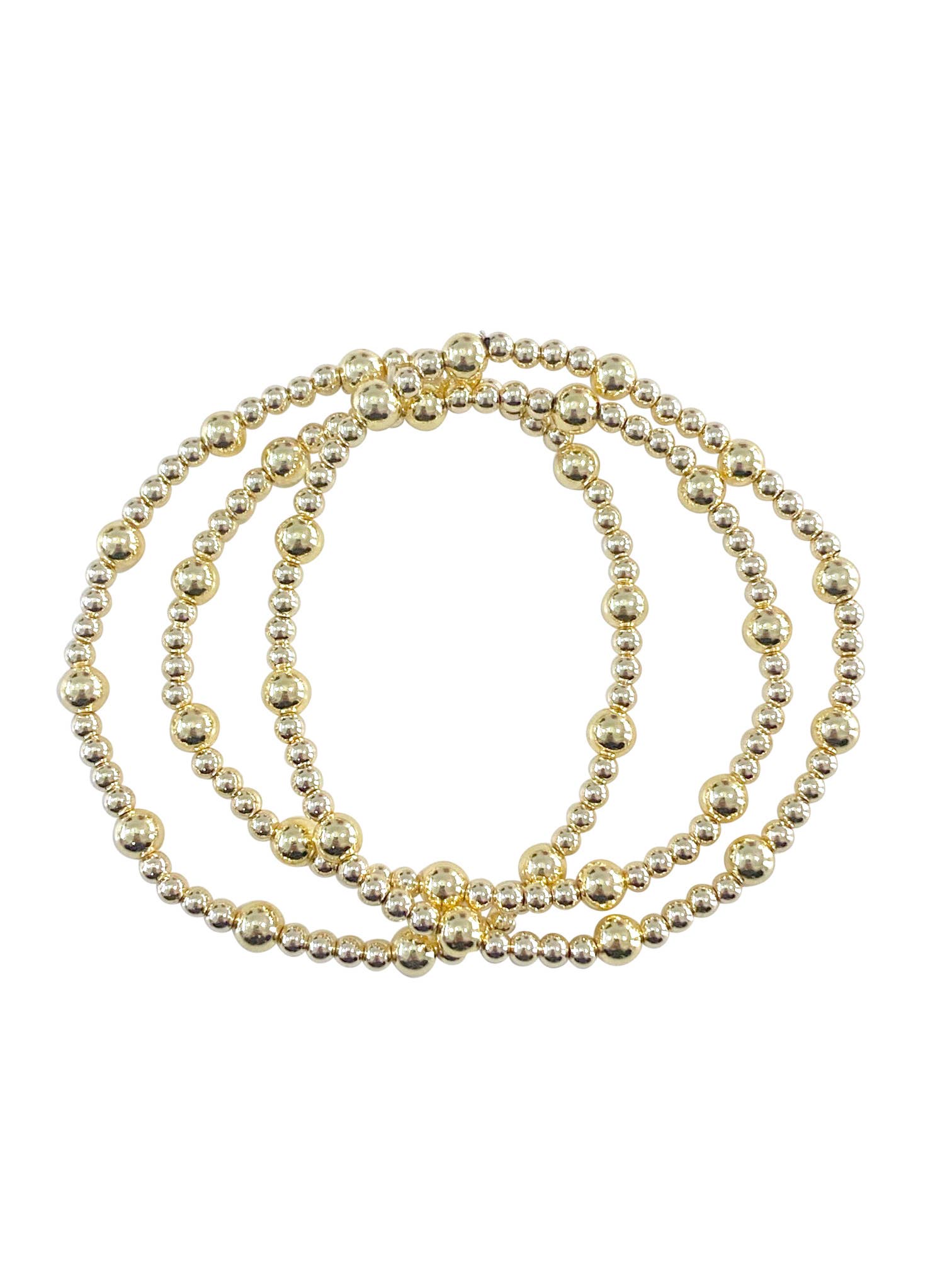 The Leah is a mix of 2mm & 4mm beads. • 14 K gold filled & elastic string • Handstrung in College Station, Texas. Sourced in the US. • Waterproof, workout proof & tarnish proof