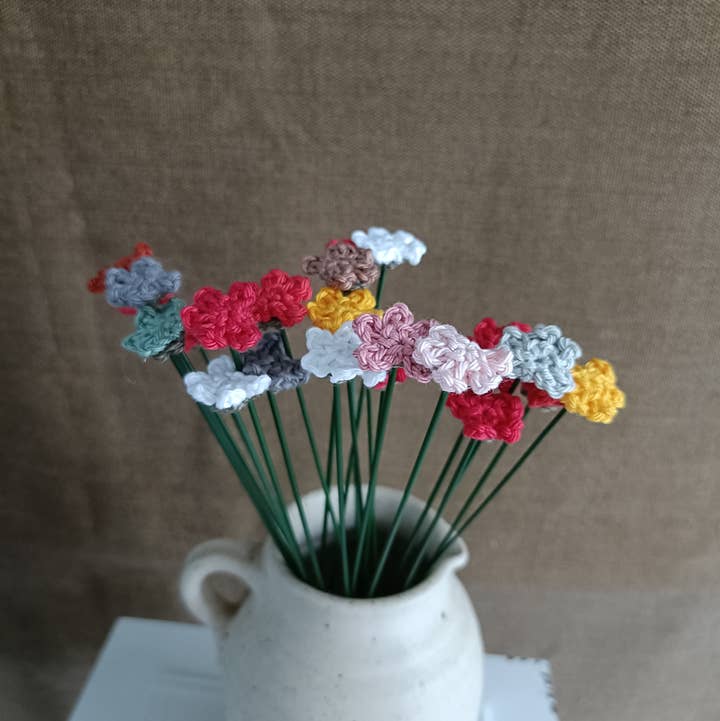 Discover the charm of our handmade crocheted iron wire roses, an enchanting addition to your decor. Each rose has been crocheted with care. These unique crochet roses come in a range of vibrant colors, giving you endless options to personalize your space. With a diameter of 18 cm, they are a perfect addition to floral arrangements, bouquets or other creative decorative arrangements. The flexible iron wire makes it easy to model the roses and integrate them into various settings. Whether you use them as table decorations, wall decorations, or as part of a DIY project, these crochet flowers add a touch of elegance. And combine them with the other flowers in the webshop. You get a random mix of roses. If you prefer a specific color, please send a message.