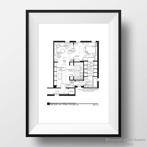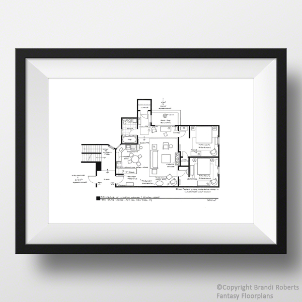 A few of the details I've noted for The Simpsons include: a plastic plant and a hook rug that was made by Marge, corn cob curtains, lead paint on the walls, Homer’s Duff beer in the fridge, a Gymboree and a tree-house. This print is reproduced from my original and expertly hand-drafted drawing. Printed on acid-free, matte paper. Each print is packaged with a custom size, acid-free backing board in a cello sleeve and labeled with a decorative sticker indicating the size. Frame not included.