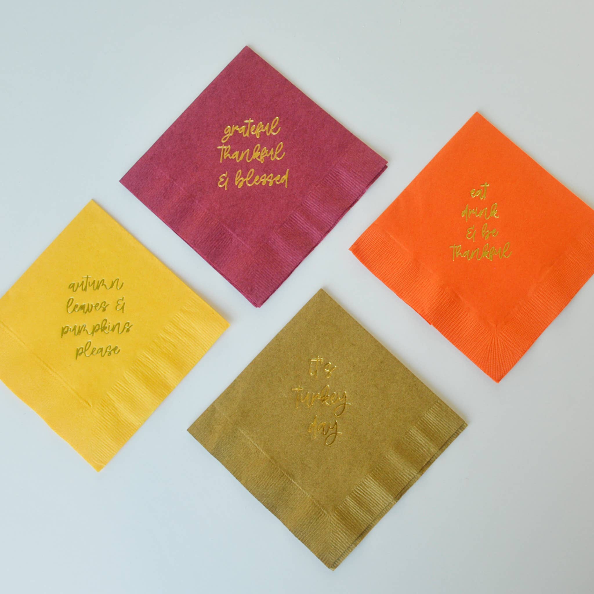 Show your upcoming Thanksgiving guests just how welcome they are by showing them you attended to every last detail, including their towels. These are a definite must have. _____________________________________ Set of 20 3-ply guest towels with 4 designs in gold foil effect. Size: 4.25'' x 7.75''