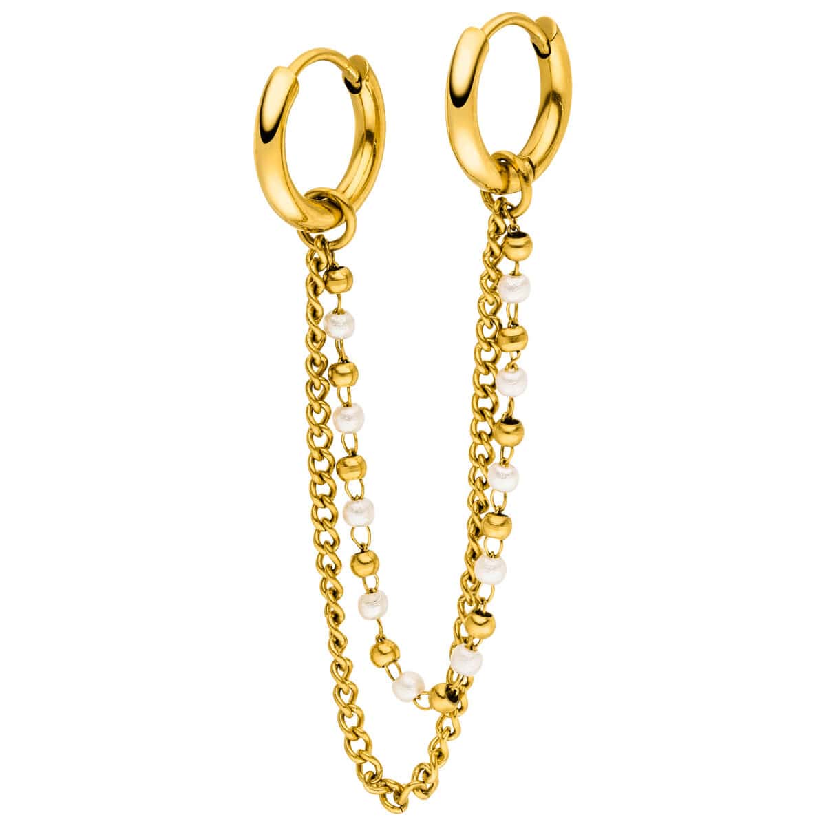 These charming huggies feature sparkling drop pendants adorned with cubic zirconia stones all around. Our Tear Drop Earrings are pretty eye-catchers. * Price for two earrings * Material: Surgical steel 316L, cubic zirconia stones * Finish: 18 karat yellow gold plated or high gloss polished * Inner diameter: 10mm * Stone cut: drop cut, faceted * 🚿 Waterproof & nickel-free To the matching Glamour Drop necklace