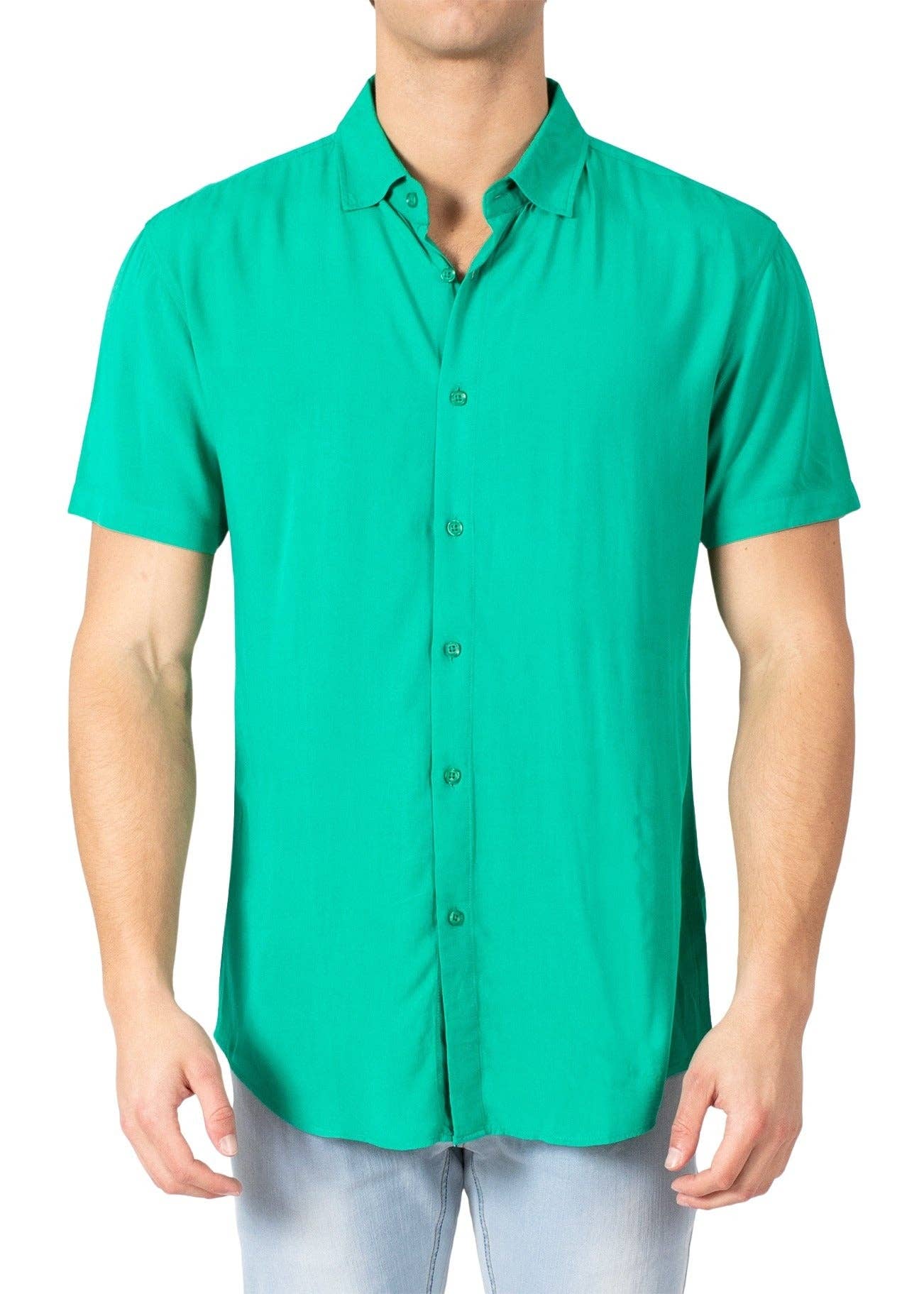 WEIV - Wholesale Button Down Shirt - Men's - Solid Chambray Short Sleeve Button Down Shirt2