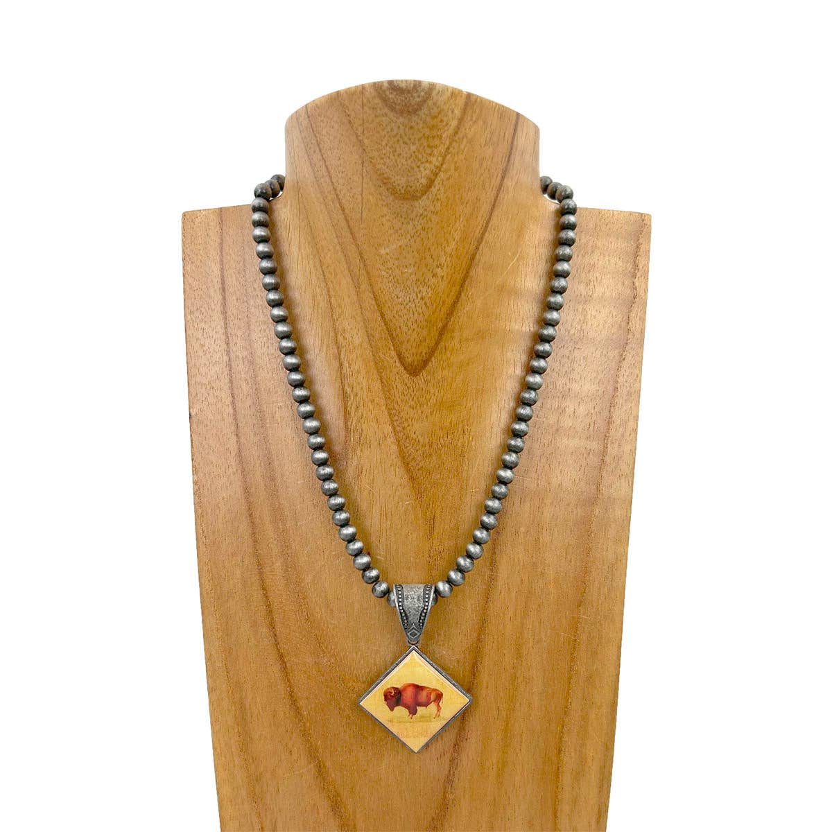 Wholesale NKZ231209-15 15 inches silver Navajo pearl beads with triangle buffalo bill pendent Necklace