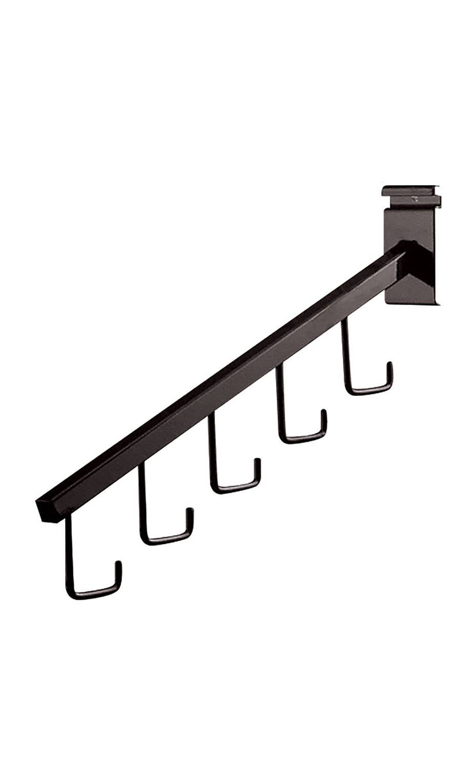 The Black Peg Hook for Wire Grid will let you maximize your wire grid panels and free standing displays. Merchandise hangs neatly and uniformly. The flexibility of the fixture allows for displaying all types of accessories and small housewares. Additional features include 6 mm diameter tubing with an upturn at the tip to discourage product from falling off. An integrated mounting bracket allows for easy installation and stability.