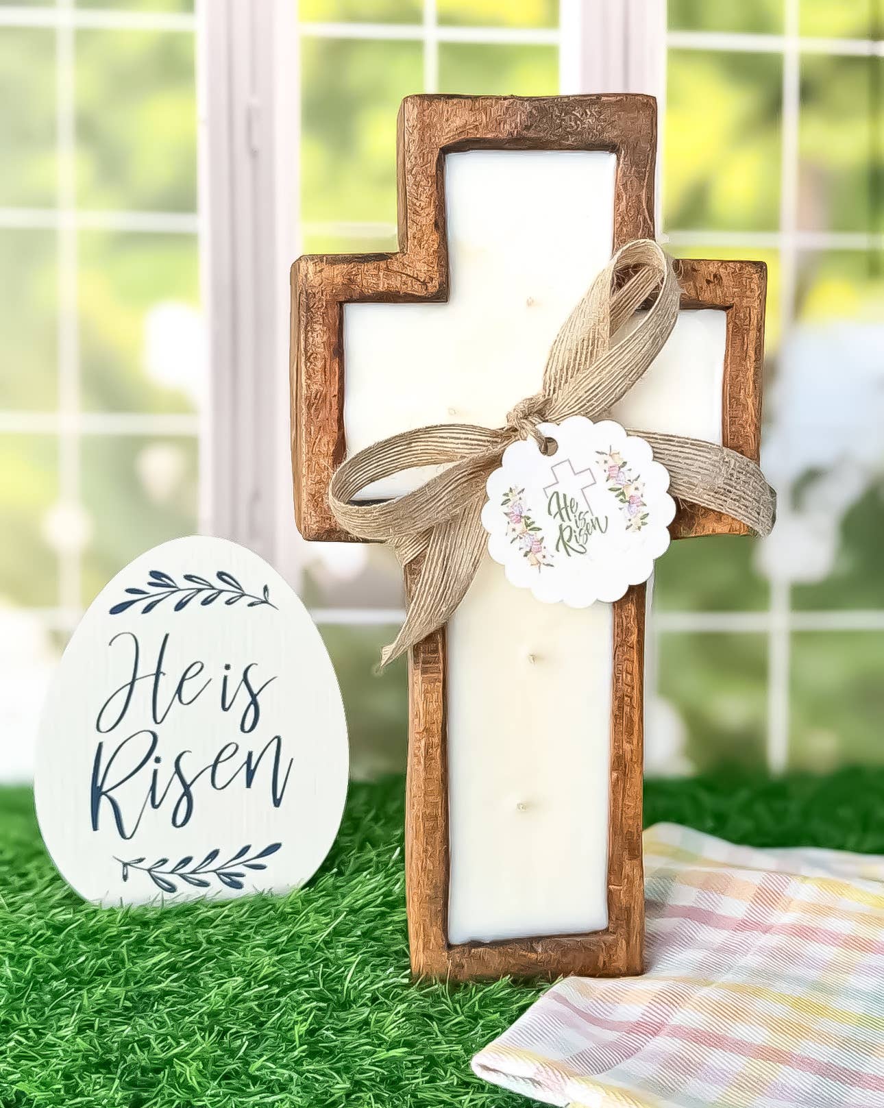 This 12 oz 100% soy wax jasmine tranquility-scented candle fills a ceramic vessel that will fit into modern neutral-styled homes. The five lead & nickel-free cotton wicks provide a smooth burn when each wick is cut down to 1/4" after burning. The candle will burn for 13-14 hours in total. Once the candle has burned away, repurpose this as a jar to hold keys or desk items such as paper clips, push pins, or pens. Even reuse as a bathroom cotton ball, q-tip, toothpick, or bobby pin holder; coin & change holder too. The new & innovative candle offers a unique message for your loved one within the wax as time progresses. You will see a cursive written "Bless This Home With Love & Laughter" sentiment after about 10 minutes. As you watch, the entire decal with a black scroll design will appear after 60 minutes. Then, the message will hide again and reappear with each burn. The left side bottom of the candles has a simplistic "Bless This Home" tan decal. The 12-sided glossy finish vessel is s
