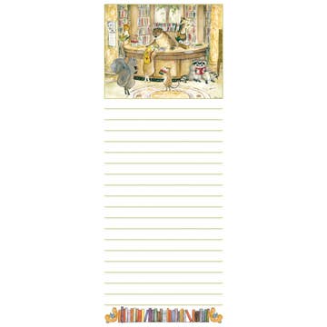 Magnetic Notepad: 50-page notepad with chipboard backer adheres to refrigerators and other metallic objects with sturdy magnets. Easy tear-off sheets with image at top and a unique border at bottom. Notepads do not contain a storyline. 9" x 3.5" x .5"