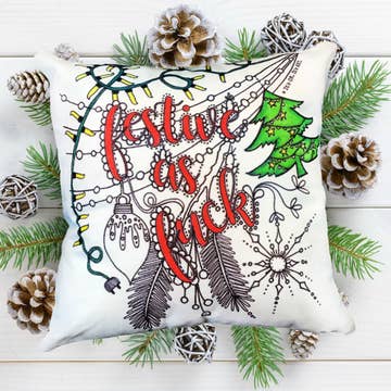 You are purchasing: One (1) decorative, removable pillow cover ONLY (insert/stuffing NOT INCLUDED). - 18" x 18" - Woven poly-cotton blend - Hidden zipper - Machine Washable This design says: You Are Dino-mite A classic design for kids: explosions + dinosaurs, what more could one want? The perfect activity to keep a little one creatively entertained. Suitable for ages 7+. Color-your-own pillow for the playroom, couch, or bedroom. I hand-draw these designs using pencil and ink, then I digitally scan them, edit the designs for clarity, and then they are digitally printed on decorative pillow covers. The black outline is indelible - it will never wear off, crack, or fade. You (or whoever you gift this to) will turn this pillow cover into cheeky, yet functional, art by unleashing all your creative powers and Coloring your heart out!
