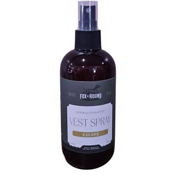 Fox + Hound Vest Spray contains a quick-release deodorizer to cover smells immediately and uses bio-organisms to naturally digest stains and odors to get rid of odors permanently. It is non-staining and will work while you sleep! Many sprays out there only use encapsulants to cover odors. This is only a temporary fix since the stains will continue to emit odors as they decompose; in which, you have to spray the deodorizer again to cover the smell. Some odor-odor masking sprays incorporate zinc metal to help deodorize by killing the bacteria on the vest. Zinc poisoning is very toxic to dogs! Vest Spray is the most natural and effective way to not only eliminate odors but also remove the source of the odor. We even use it on our clothes and shoes when they need a refresher! Available in Escape' , Sandalwood, and Unscented
