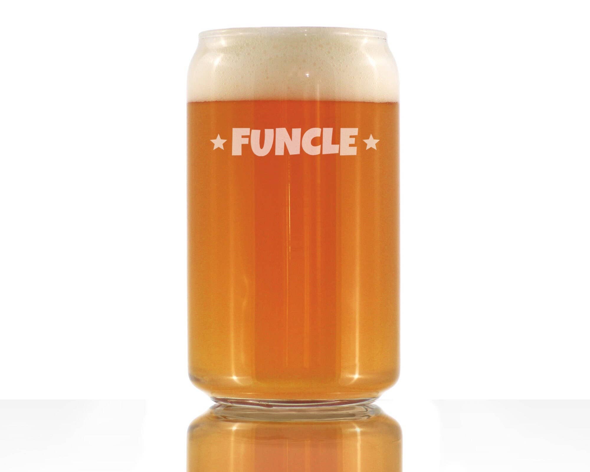 Funcle - 16 oz Pint Glass for Beer - Funny Baby Reveal Gift for Fun Uncles - High quality, large, 16 oz pint glass made in the USA - Etched text (not printed) - The text is engraved by hand in Colorado and will never wear off - Individually gift boxed glasses designed to ensure safe delivery - Dishwasher safe! Great for daily use Beery good gift mug for for dads that love drinking beer! The design is hand engraved (not printed) into the fun new beer can pint glass so that it never wears off. These are fantastic presents from a son or daughter that will be appreciated for years to come. Each cup is engraved by hand in our small Colorado shop. Yet, this pint glass makes a great Father's Day gift under 20 dollars! This isn't a cheap novelty gag gift. This is quality, hand blown, dishwasher-safe glassware that is perfect for use as your daily beer glass.