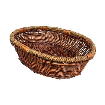 A Traditional Thanksgiving Cornucopia shape basket. Use this Horn of Plenty wicker basket for creating a centerpiece for an Autumn Thanksgiving dinner table. The cornucopia looks great amongst fall decorations or on an autumn wedding table. Each Each Cornucopia is handmade and the same size, but the coloring of the wicker varies. Overall: 12" x 6-3/4" Dia. Inner Opening: 5-1/4" Dia.