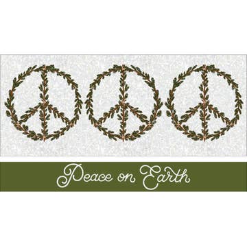 Tri-fold greeting card with envelope. Holds money or gift card. Inside tabs to secure money or gift card. Peace Love Joy A gift for you Embellished with glitter. Folded size: 6.5" x 3.5". Art by Nina Seven, Pink Light Studio Proudly made in the USA.