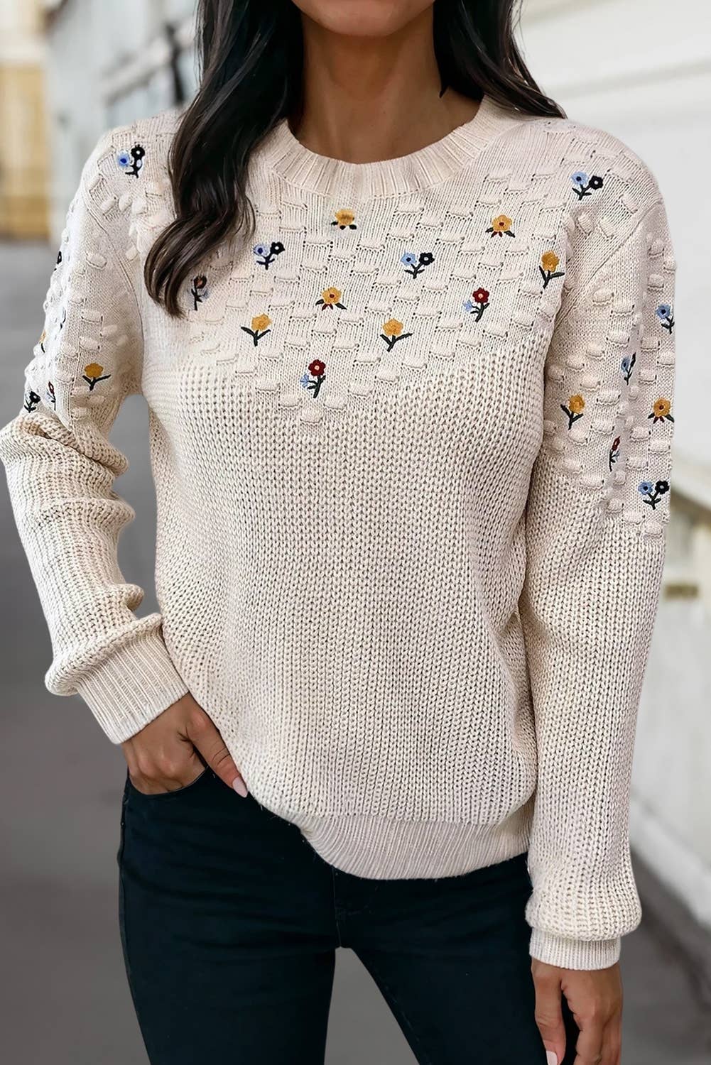 Material 52%Viscose+26%Polyester+22%Polyamide Style Casual Pattern Floral Occasion Daily Season F/W 🌸 Floral embroidery infuses your fall look with a sweet, vintage vibe. ✨ Scalloped hem brings a chic, feminine detail to this cropped sweater. 👚 Cropped silhouette pairs beautifully with high-waisted jeans or skirts. 🤍 Cozy white knit keeps you warm while staying fashion-forward. 🛍️ Explore our wholesale women’s sweaters—from casual to dressy styles! We offer personalized woven labels and tags. If you're interested in this service, please contact us to learn more details.