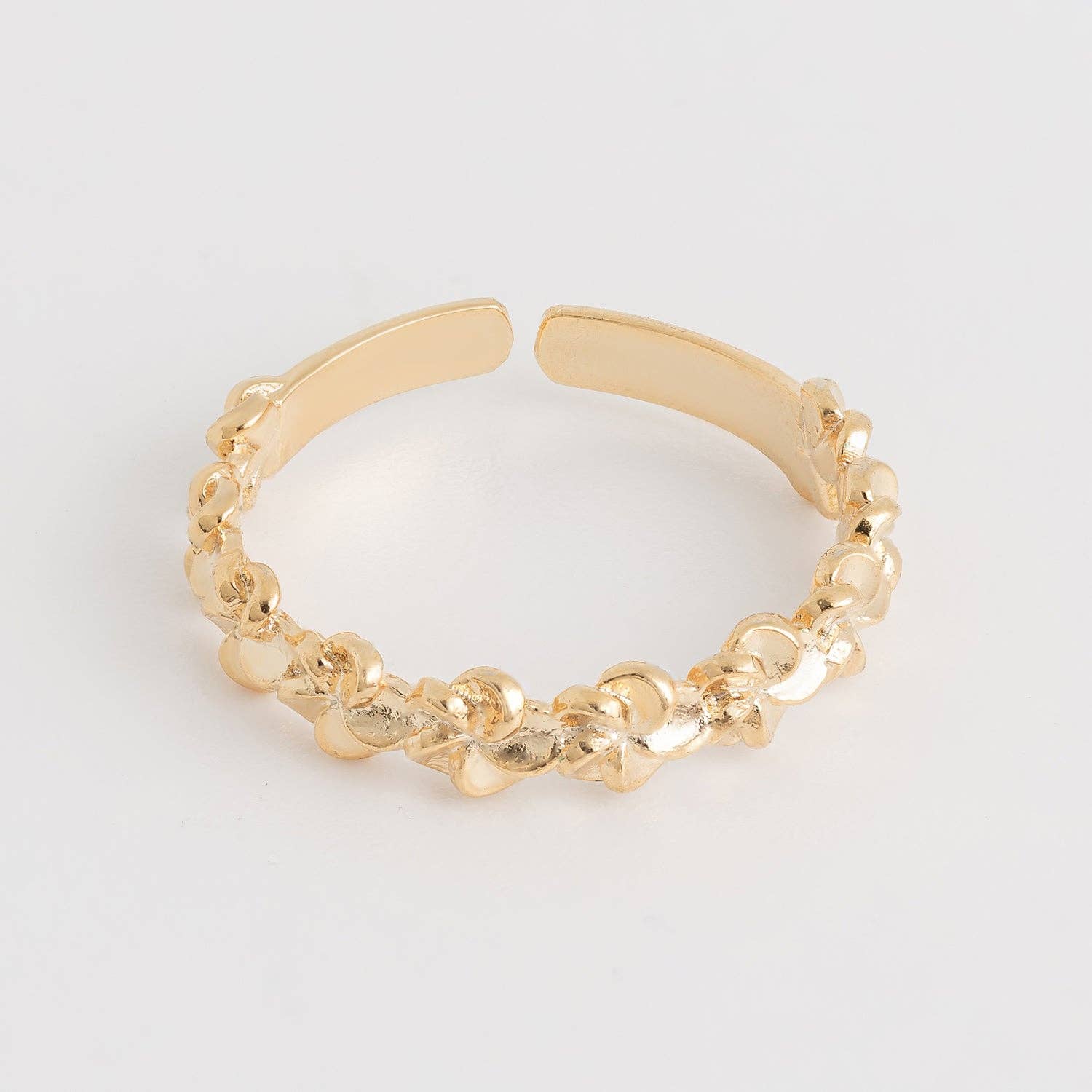 Make a bold statement, this ring features a distinct gold dipped chain braid design. Unleash the charm of this versatile accessory, effortlessly turning any outfit into a fashion statement. Available in G. This item is sold in packs of 1. Ring Size: Adjustable This ring is made with 100% Brass.