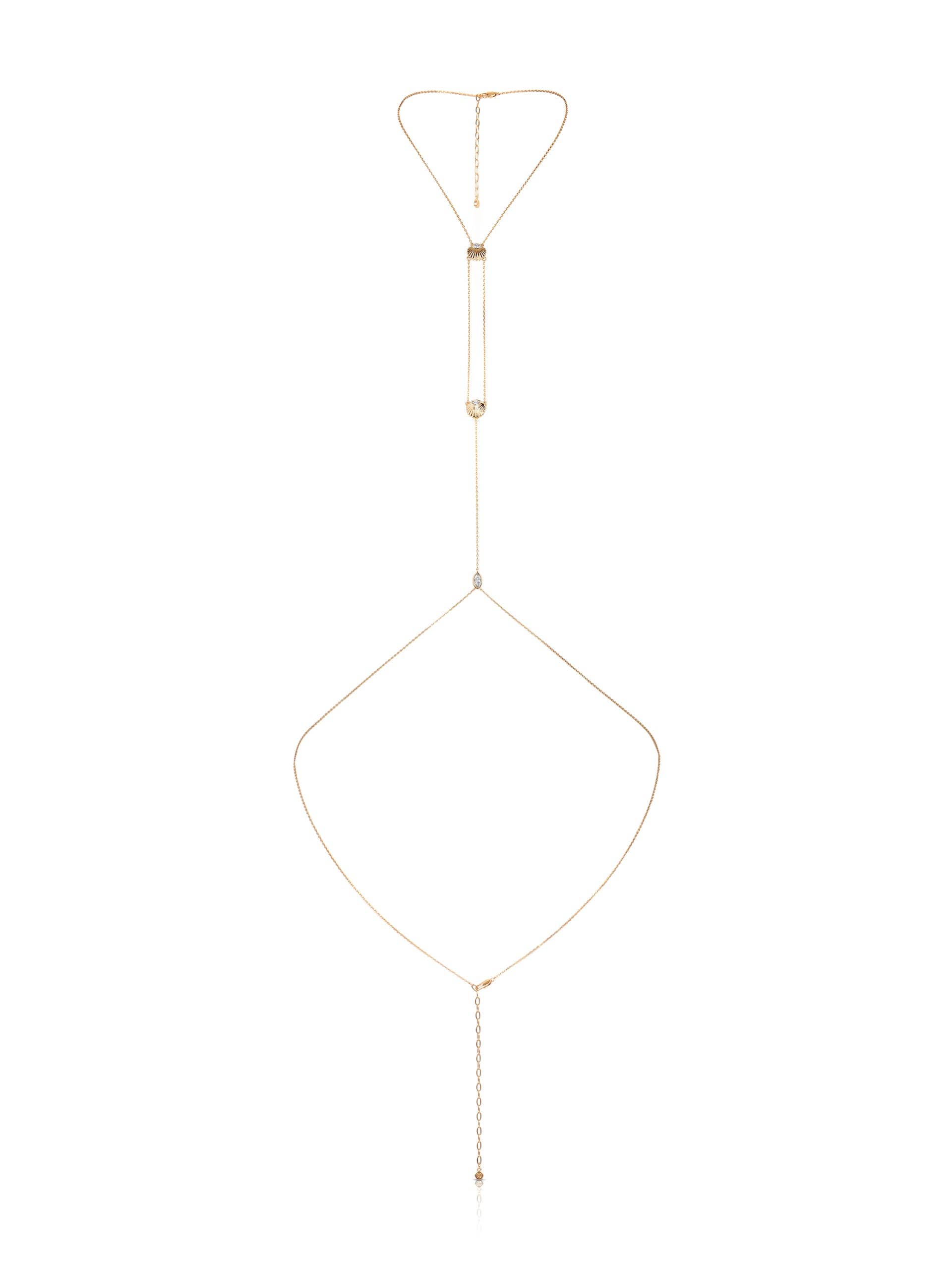 The KARMA waist chain combines the enchanting beauty of Amazonite with the brilliance of zircons, creating a perfect harmony between nature and sophistication. A fine golden chain enhances your waist and reveals a fascinating pendant: two drops of deep and luminous green Amazonite are delicately connected by round zircon crystals that add a touch of light and sparkle. Wear this unique piece of jewelry and let yourself be infused with its positive energy. MATERIALS & DIMENSIONS 14k Gold filled chain â—¦ The closest alternative to solid gold. â—¦ Made from recycled gold â—¦ Water-resistant White Zircon Crystals â—¦ 5A quality: a brilliance comparable to diamond! â—¦ "Round brilliant" cut Amazonite â—¦ "Faceted pear" cut â—¦ Natural stone Unleash your creativity with the KARMA chain, a 5-in-1 piece of jewelry that transforms: wear it as an anklet, bracelet, belly chain, double wrap necklace, or long necklace according to your desires.