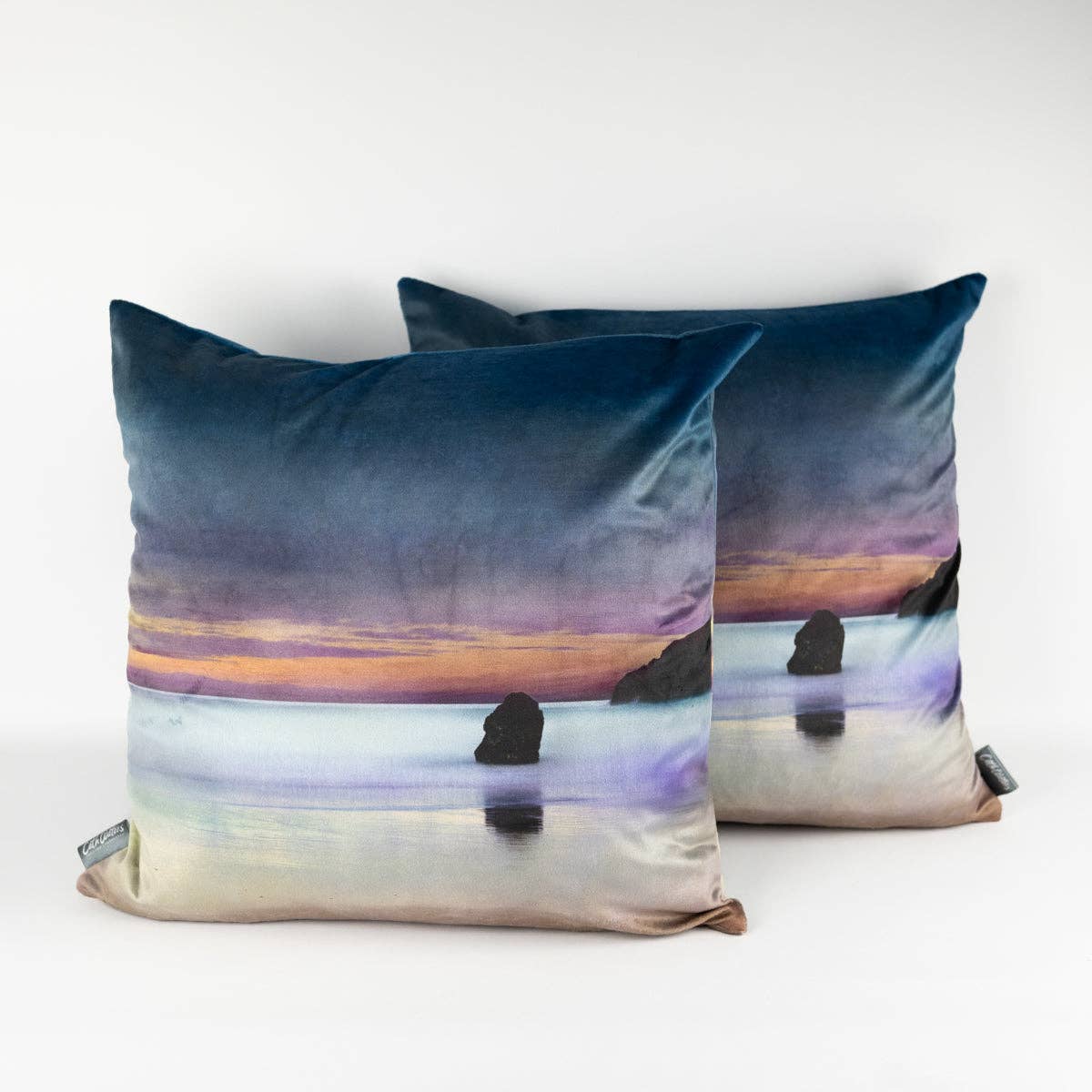 Scottish landscape velvet cushions, printed and stitched by a traditional 100 year old company in Lancashire’s textile heartland. Each cushion is 45cm square with vibrant, removable covers, printed on both sides with Cath's Scottish Landscape Art. Cushions feature a hidden black zip fastening and an optional, high quality, luxuriously comfortable, feather inner pad. Designed in Scotland, made in the UK. Please note our new velvet cushions replace our previous cushion range.
