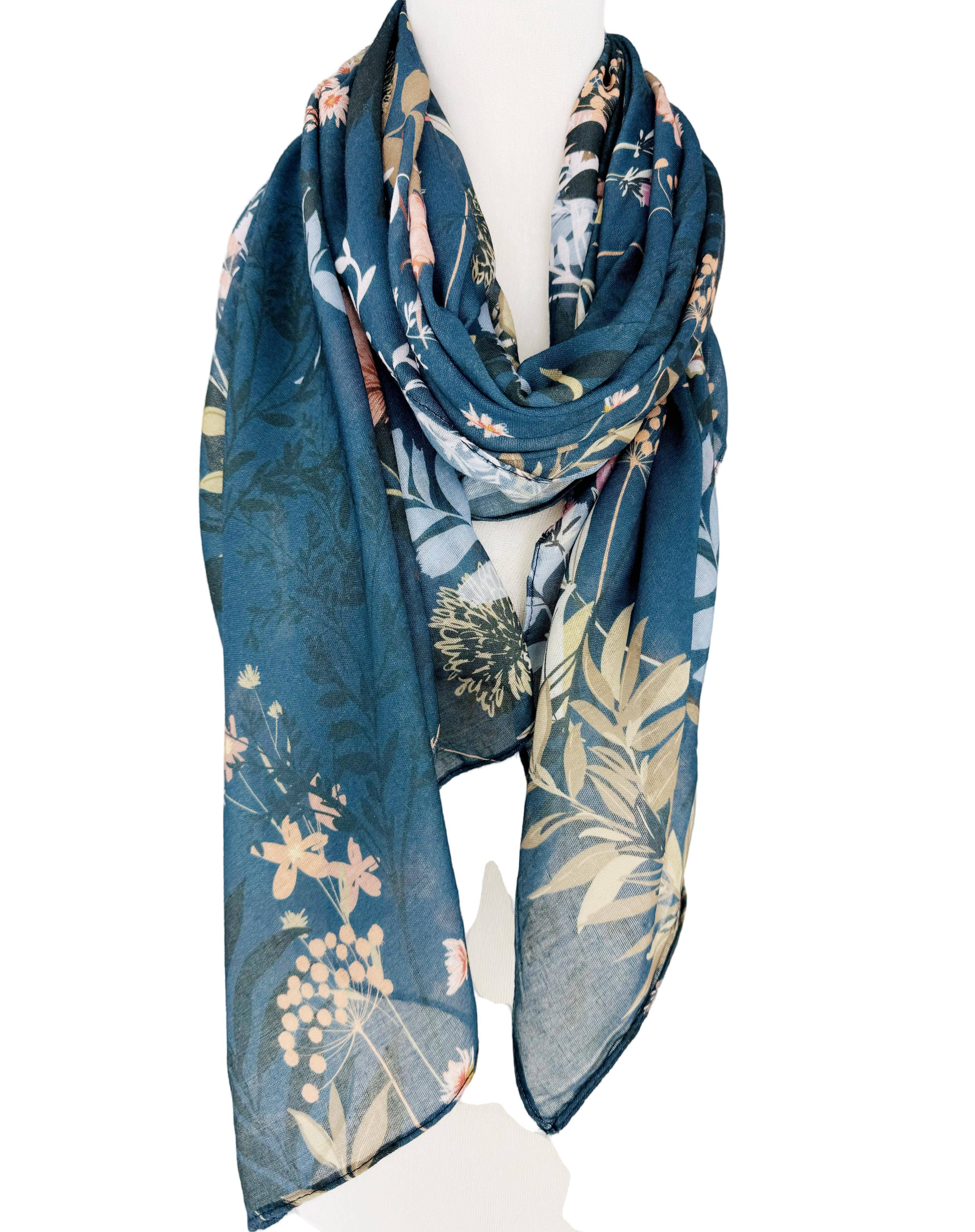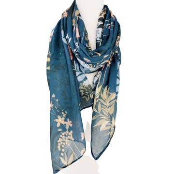 Crinkled Cotton Scarf - Tulips Blue