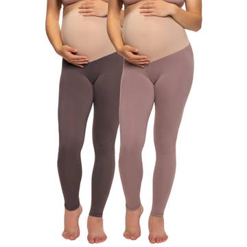 Solid capri length maternity leggings with an elastic waistband. 92% Polyester 8% Spandex. Buttery soft fabric.