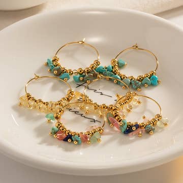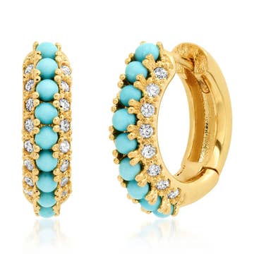Tiny and full of sparkle, these stone huggies are so much fun! These are our best-selling huggie style of earrings, and an easy item to stock and sell quickly. Earrings are gold-plated and measure approx. 12mm. Stones are man-made.