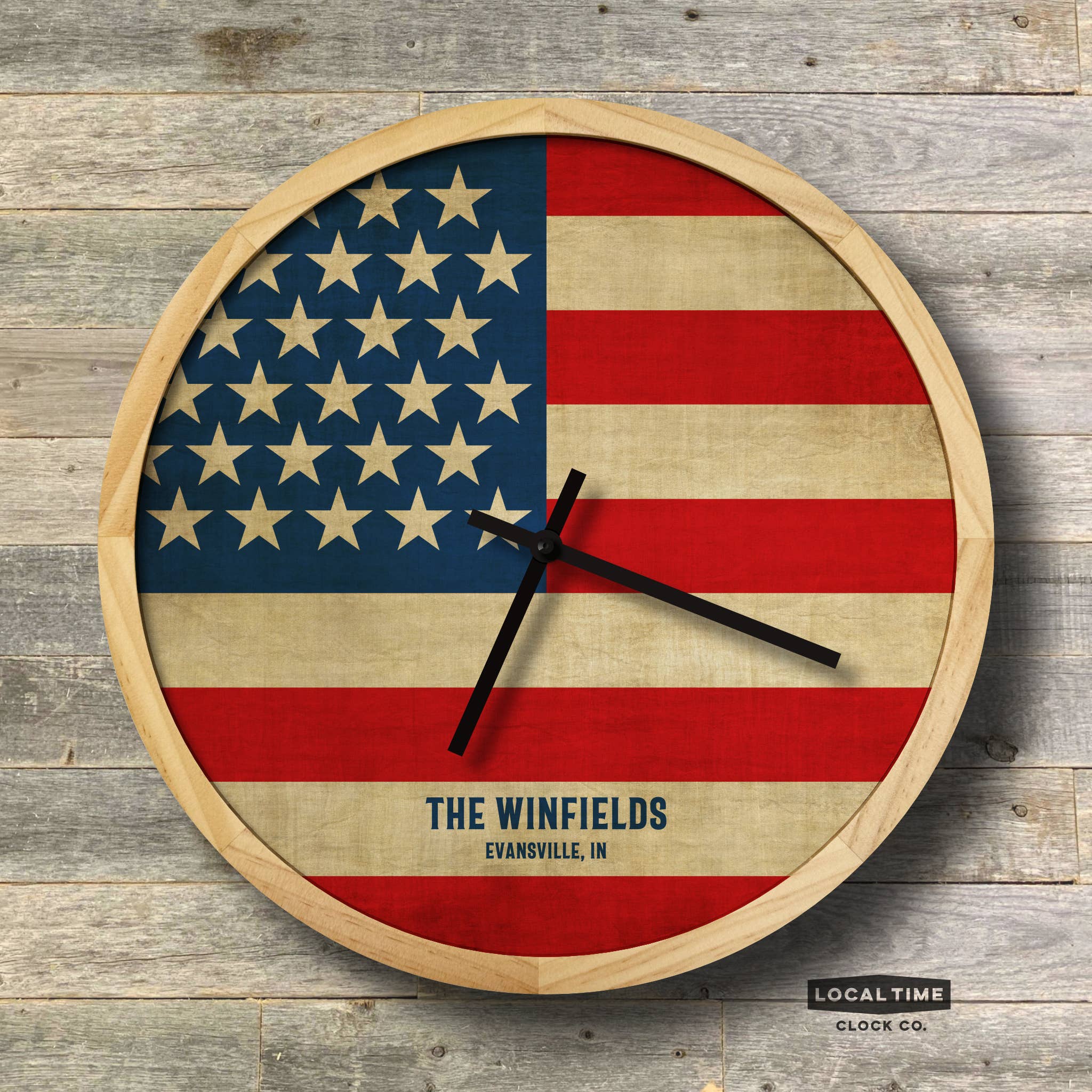 Add a splash of coastal charm to your home with our Beach Time wall clock. This unique timepiece brings the breezy vibes of the shore right to your wall, blending local flavor with casual style. Quartz clock movement (very quiet) Measures 12" Diameter Handcrafted solid wood frame and face Easy hang mounting feature Natural wood finish Made in Massachusetts, USA Recyclable corrugated gift box Requires 1 AA battery (not included)