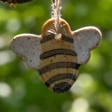 This ornament measures approximately 3.5 inches. It is printed with my illustration, die cut onto 1/8 inch basswood plywood, and strung with twine.