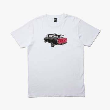 Our Desert Cruiser Tee in black is a screen printed t-shirt with a white discharge ink. With a retail fit, this incredibly soft t-shirt is made out of a 100% Airlume combed and ring-spun cotton. Our soft t-shirts are unisex in wear. How it's made: We have a USA-strong approach to production. Almost the entire manufacturing process takes place right here in America. The t-shirt blanks are designing here, dyed here and cut here. The garments are then assembled in the U.S. or Central America. All production is 100% sweatshop-free and Platinum W.R.A.P. Certified. The t-shirts are then screen printed with care in our workshop in Denver, Colorado using eco friendly manufacturing processes to minimize our ecological footprint. Washing instructions: For an optimal wash, machine wash with cold water. Tumble dry low or air dry.