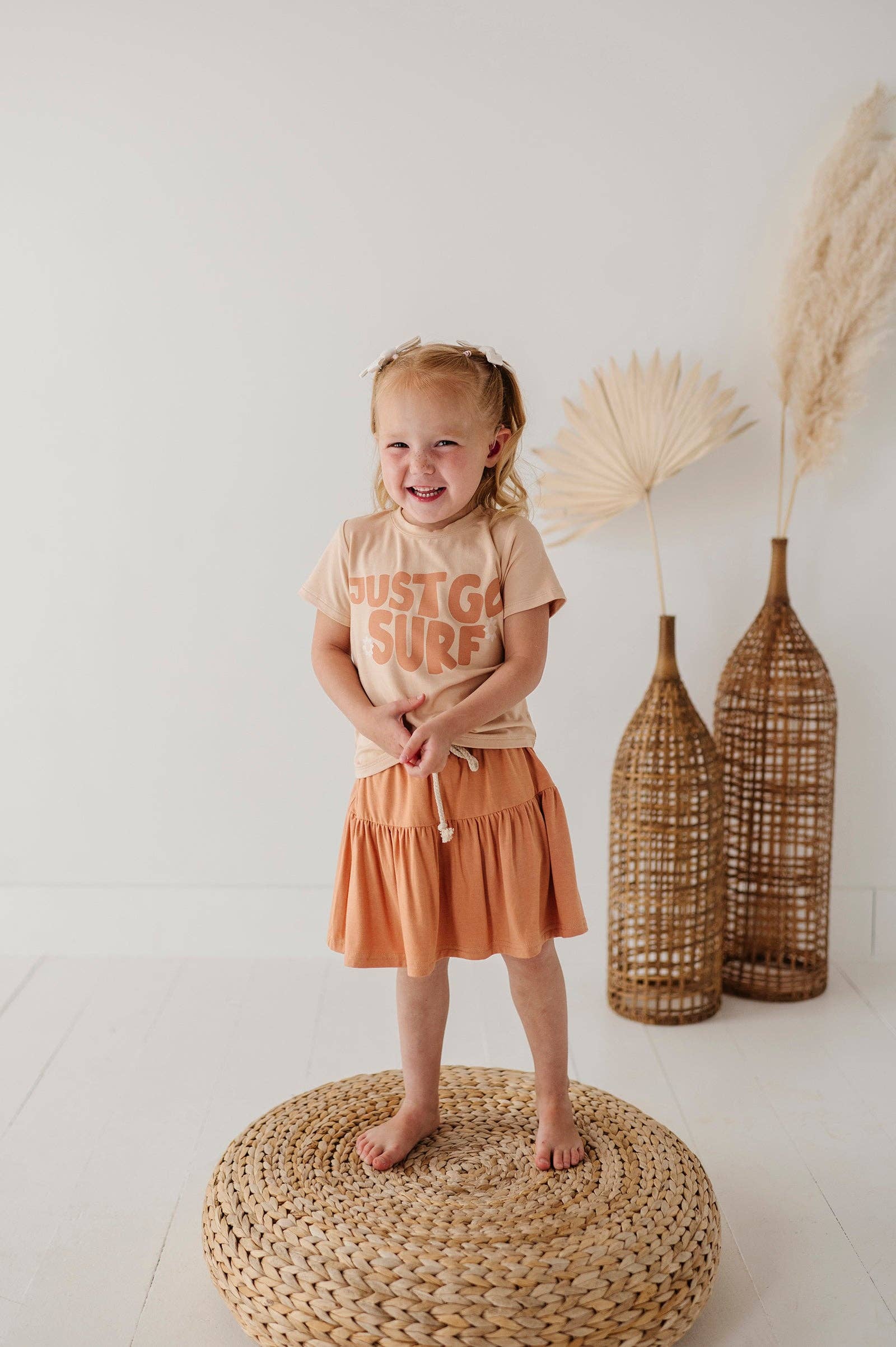 Our Skort is a versatile piece that combines fashion and functionality. Made from soft, stretchy bamboo jersey, it offers the look of a skirt with the practicality of built-in shorts, making it ideal for school, sports, or playdates. The elastic waistband provides a secure, comfortable fit, while the durable material ensures it holds up to active play and frequent washing. Available in vibrant colors and patterns, this skort pairs effortlessly with Tees and Sweatshirts.