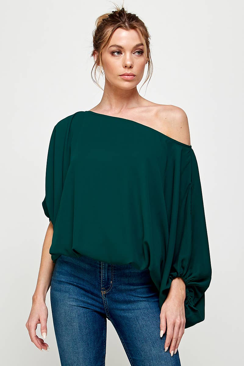 Made in USA Satin Vibrant Cowl neck 3/4 Sleeve Top