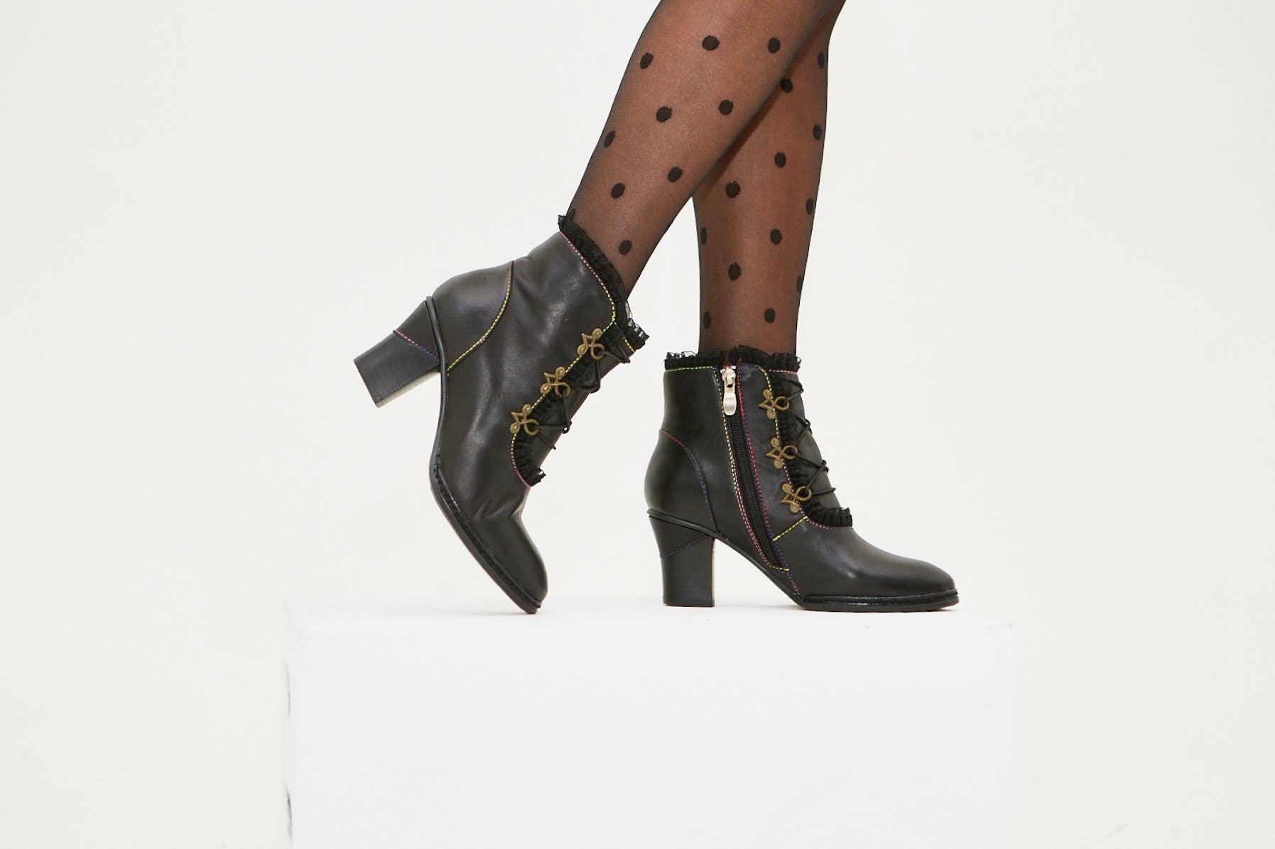 Did you ever know you needed a Victorian-era lace up bootie? We did, because we know you’re a vintage lover disguised as a modern lady. Indulge in the obscene with these Victorian GERALDINE leather boots that have adjustable lace-up closures and chunky heel. Upper: Leather Heel Height: 2.75"