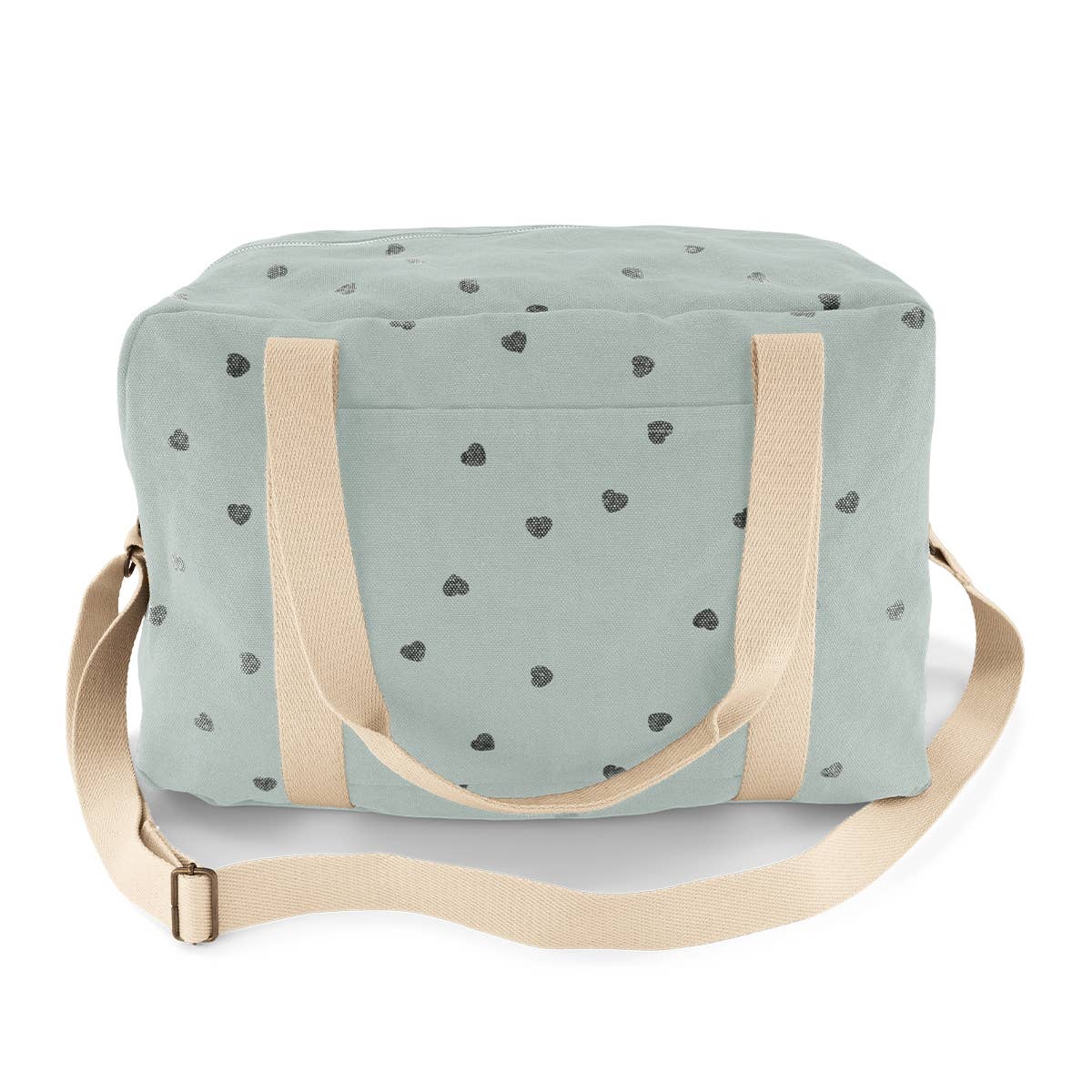 This bowling bag will work great as a diaper bag or overnight bag for a weekend getaway. It is super practical and features 2 big exterior pockets. Cumin heart printed 2 pockets outside Inside pockets Composition : 100% cotton Lining : coated cotton waterproof interior Dimensions : width 22 x length 42 x height 28 cm Lavage en machine à 30° Made in Portugal OEKO TEX certified DIAPER BAG / DIAPER BAGS / BABY / BABY ESSENTIALS / BABY ACCESSORY / WEEK-END BAG / SPORT BAG / HANDBAGS / BAGS / MATERNITY BAG