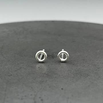 Small circles are handstamped with a starburst design. Oxidized finish. Post back with ear nut closure. Materials: sterling silver. Designed and individually crafted by hand in Portland, OR, by Emerald Zedonek. Due to the handmade nature of this item, please allow for small design and/or stone variances.