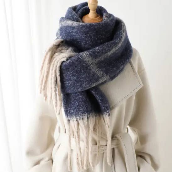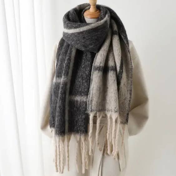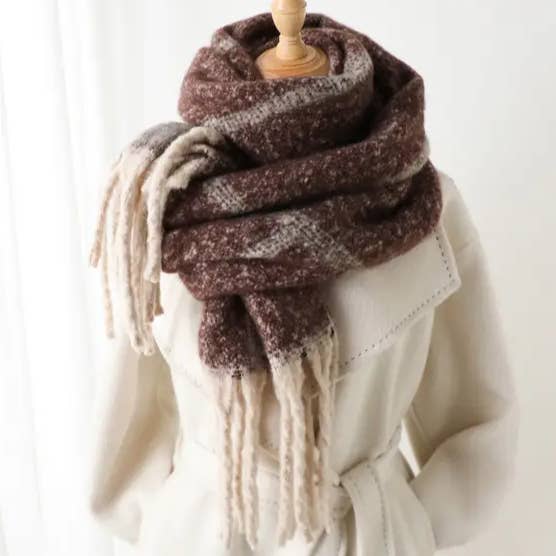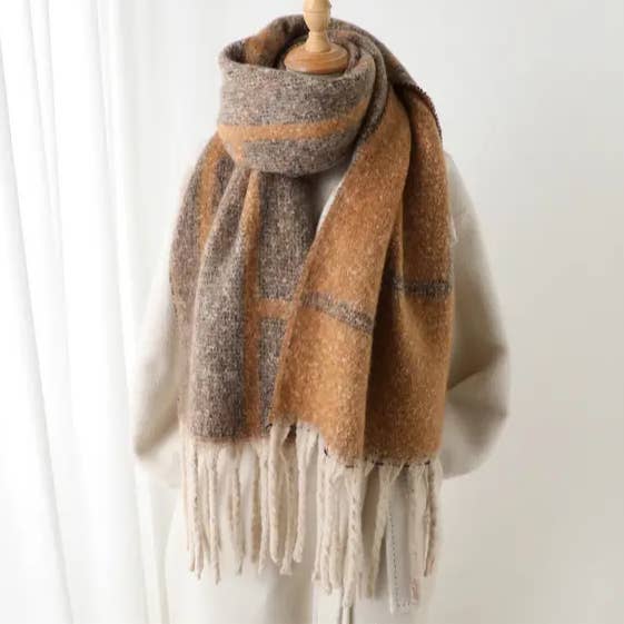 WOMEN STRIPED FRINGED PLAID SCARF_CWASC0331