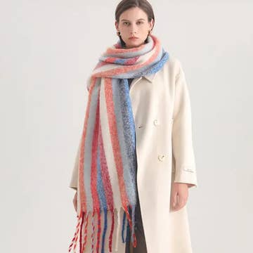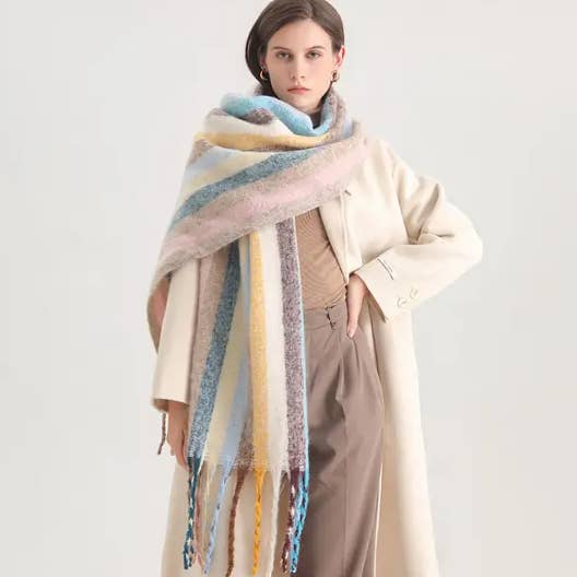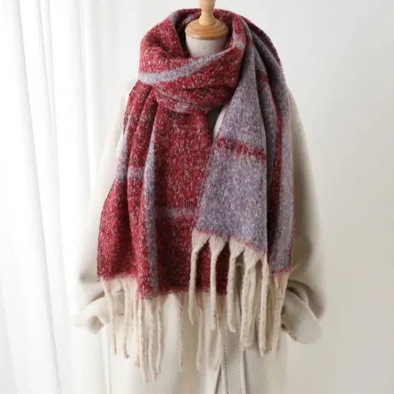 Geometric Fringe Wool Scarf,Thick Colorblock Shawl_CWASC0978