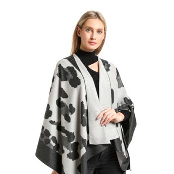 BLACK WHITE Tweed Herringbone Cape Jacket with Faux Leather Trim for wholesale on Faire
